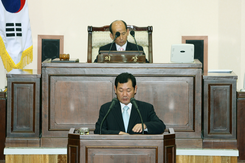 제116회 임시회 제1차 본회의시 허경선 총무과장이 행정지원국 소관 2006 주요 시정업무보고를 하고 있다.